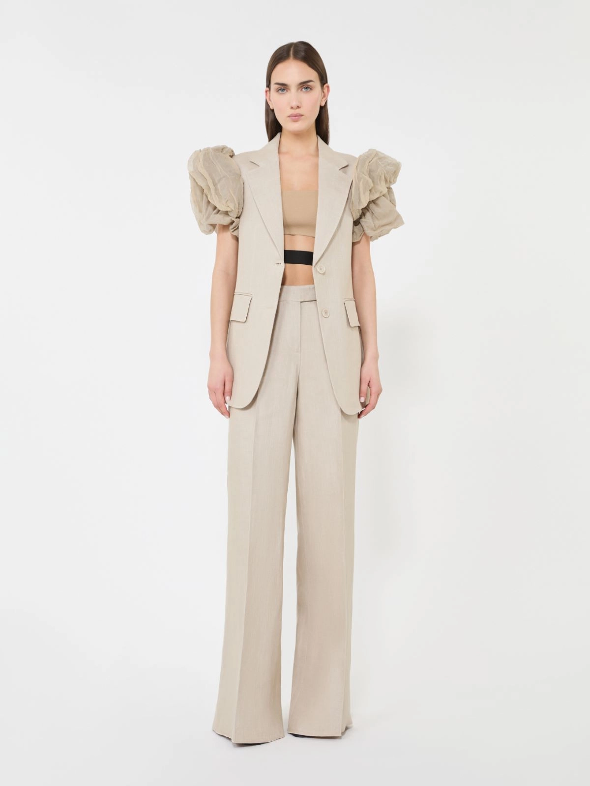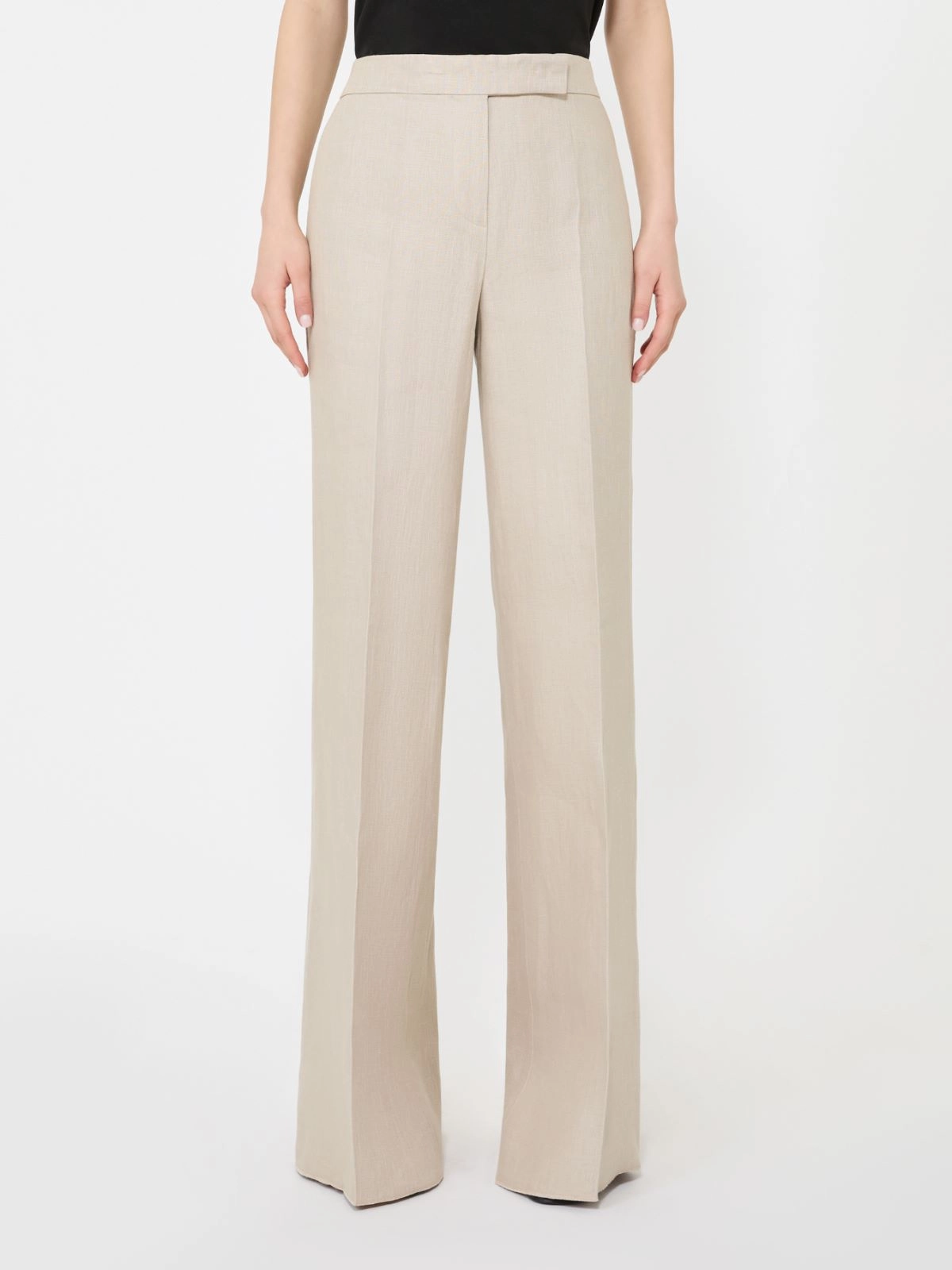 Wide-leg trousers in linen basketweave + SAND - Max Mara