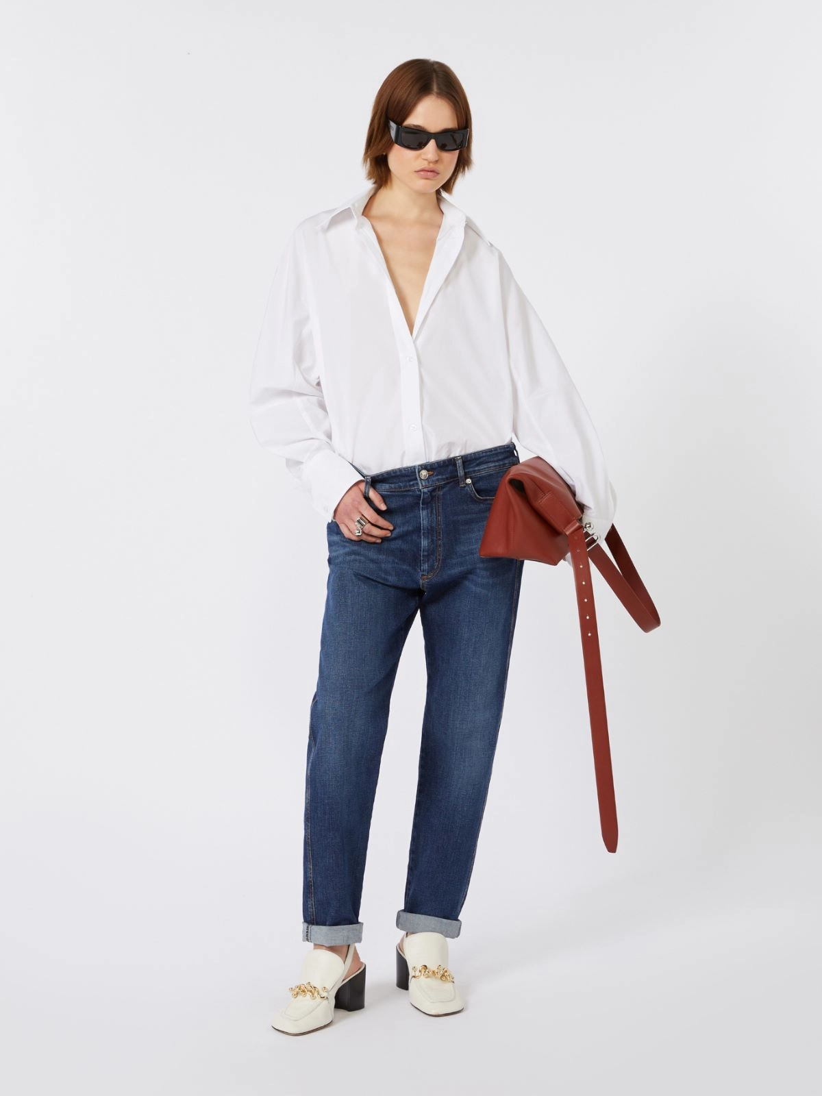 With its soft lines, the boyfriend jeans redefine a new concept of femininity. The low waist and crotch, the turned-up hem, and the personalized details on buttons, rivets, and label make them a must-have for everyday looks.