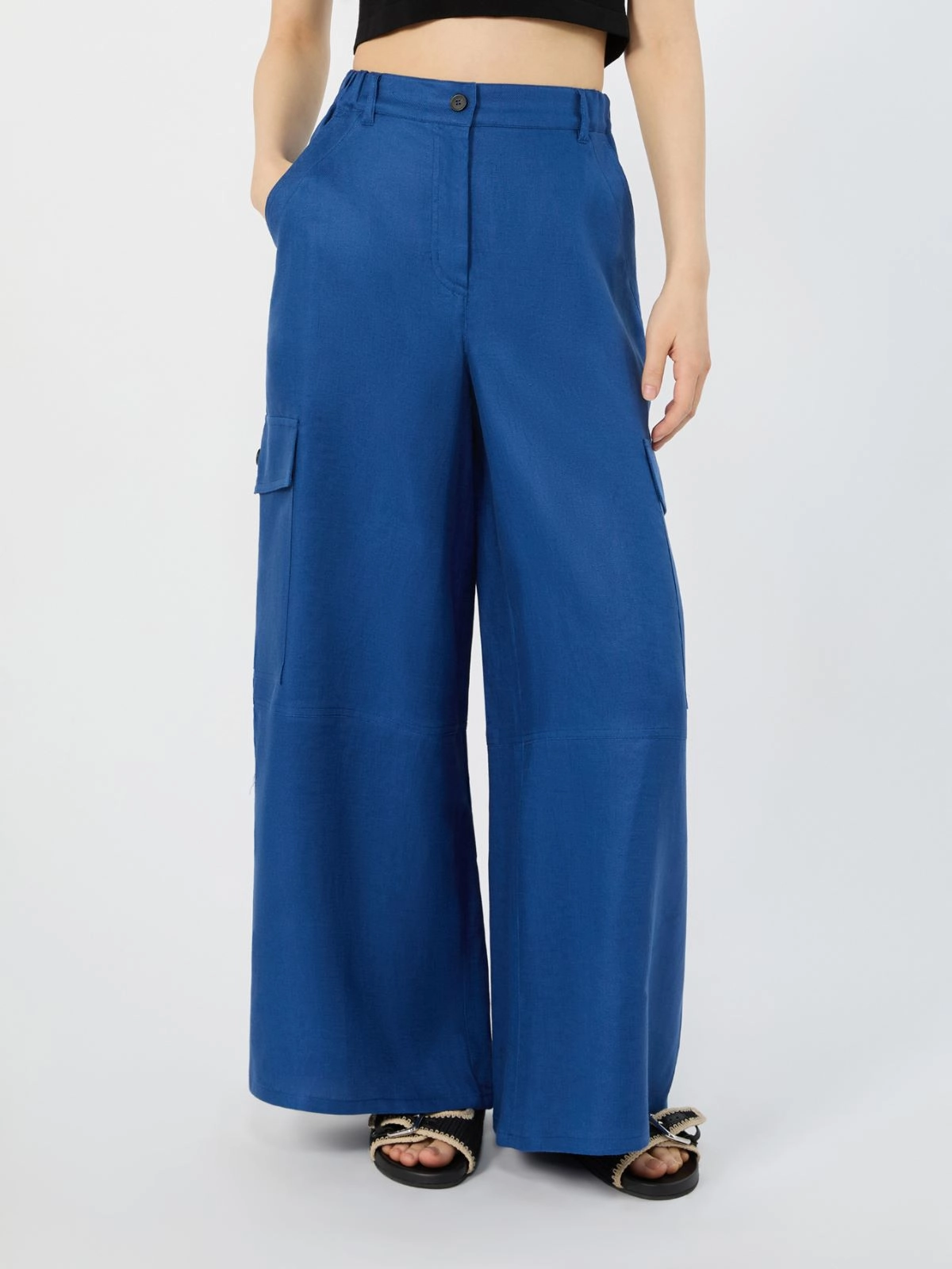 Linen gabardine cargo trousers + CORNFLOWER BLUE - Max Mara