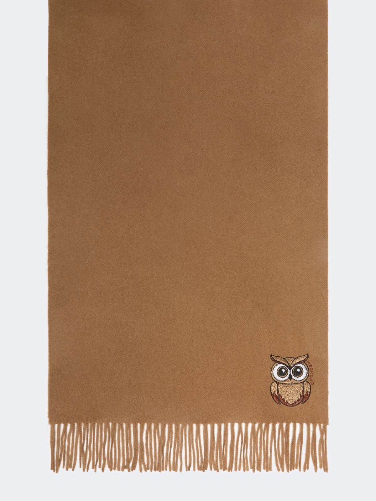 Customised rectangular stole with embroidered detail at the end.