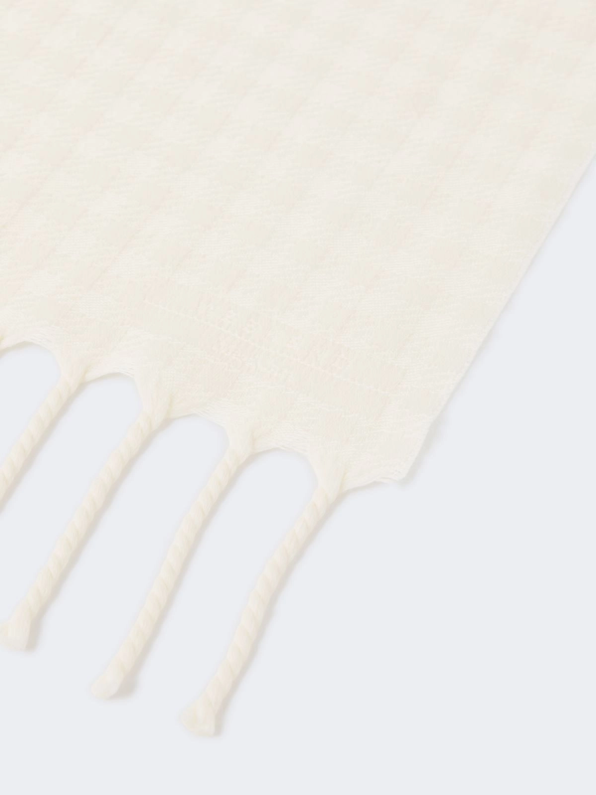 Rectangular stole embellished with jacquard knit in an all-over collection design.