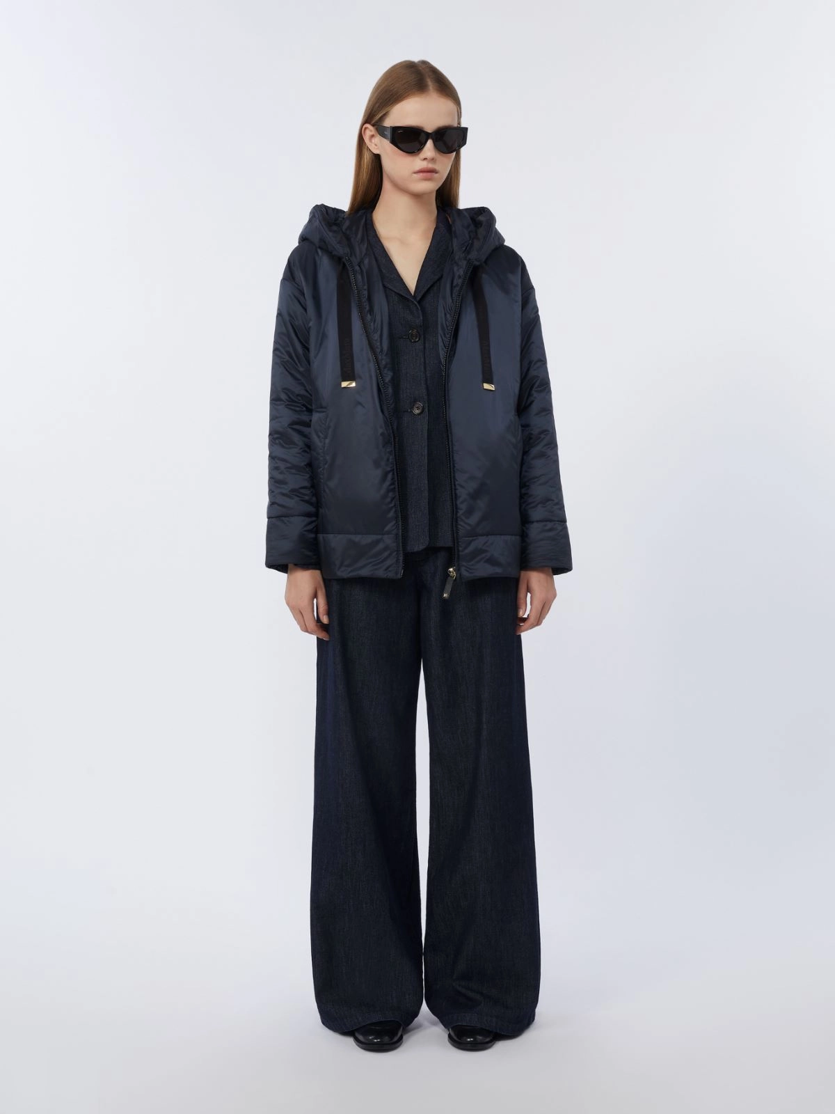 Padded water-repellent canvas hooded jacket - Midnightblue